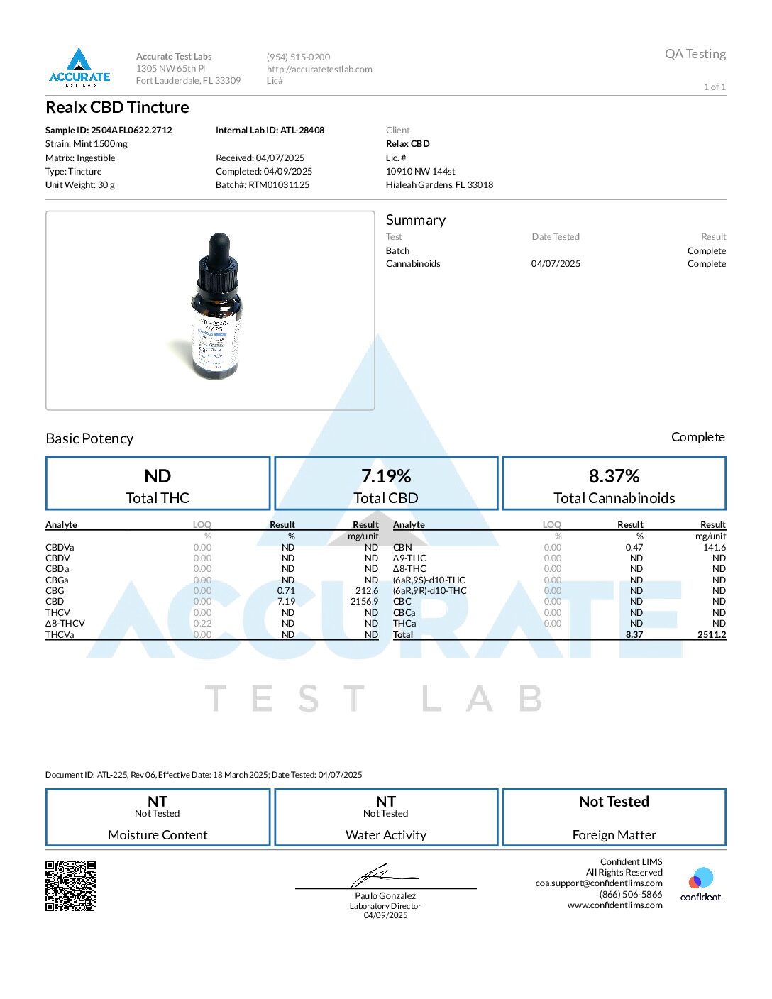 Full Spectrum CBD Extract Oil Mint 1500mg