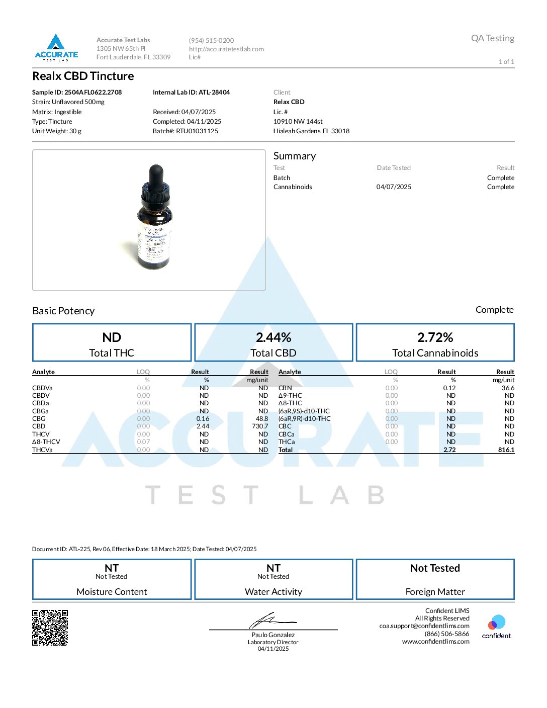 Full Spectrum CBD Extract Oil Unflavored 500mg